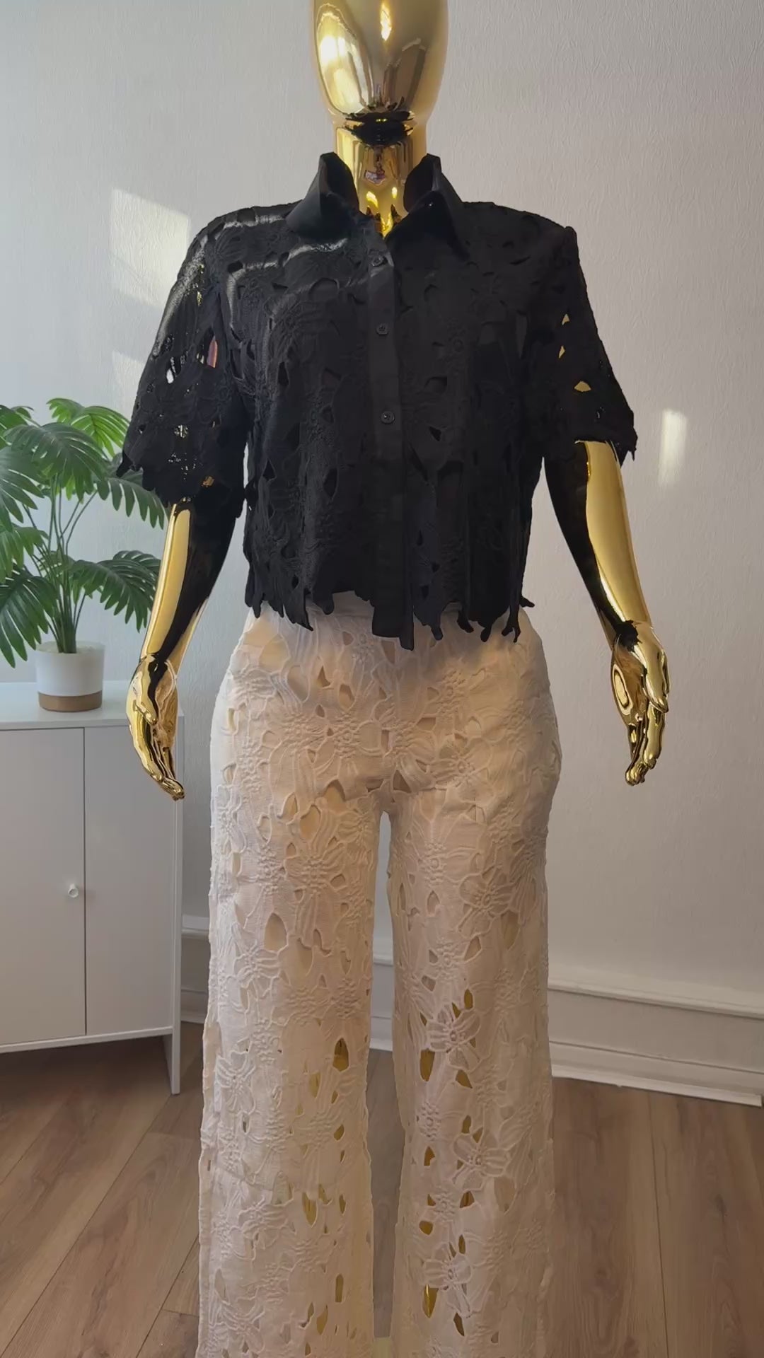 This lace co-ord set is all about comfy and cool vibes. The crop top has sleeves and well fit that's perfect for brunch date or dinner date. The wide leg trousers make it feel relaxed but still super put together. Wear it with sneakers or slides and you're ready to head out or lounge in style.